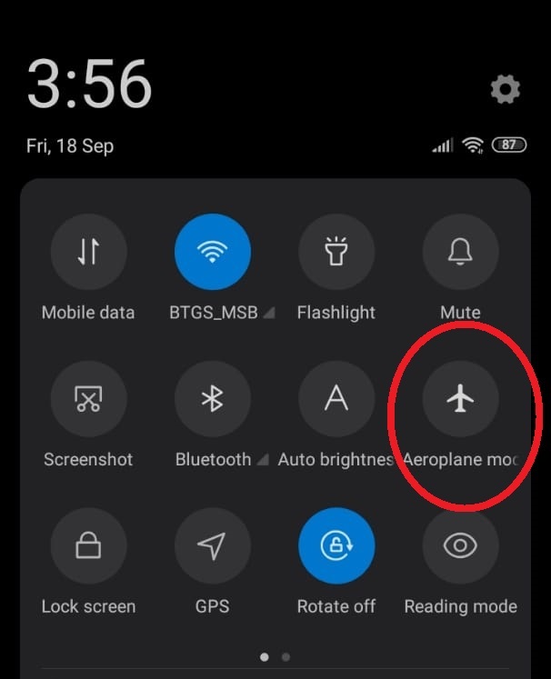 As show in the above screen, kindly tap over the flight mode button, just turn on & off that flight mode button, after doing this process the issue of "non joining of meeting link during a active call, while user already disconnected the call will resolve immediately"